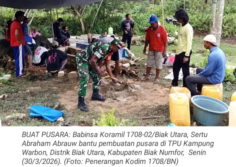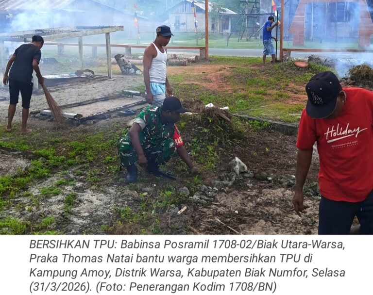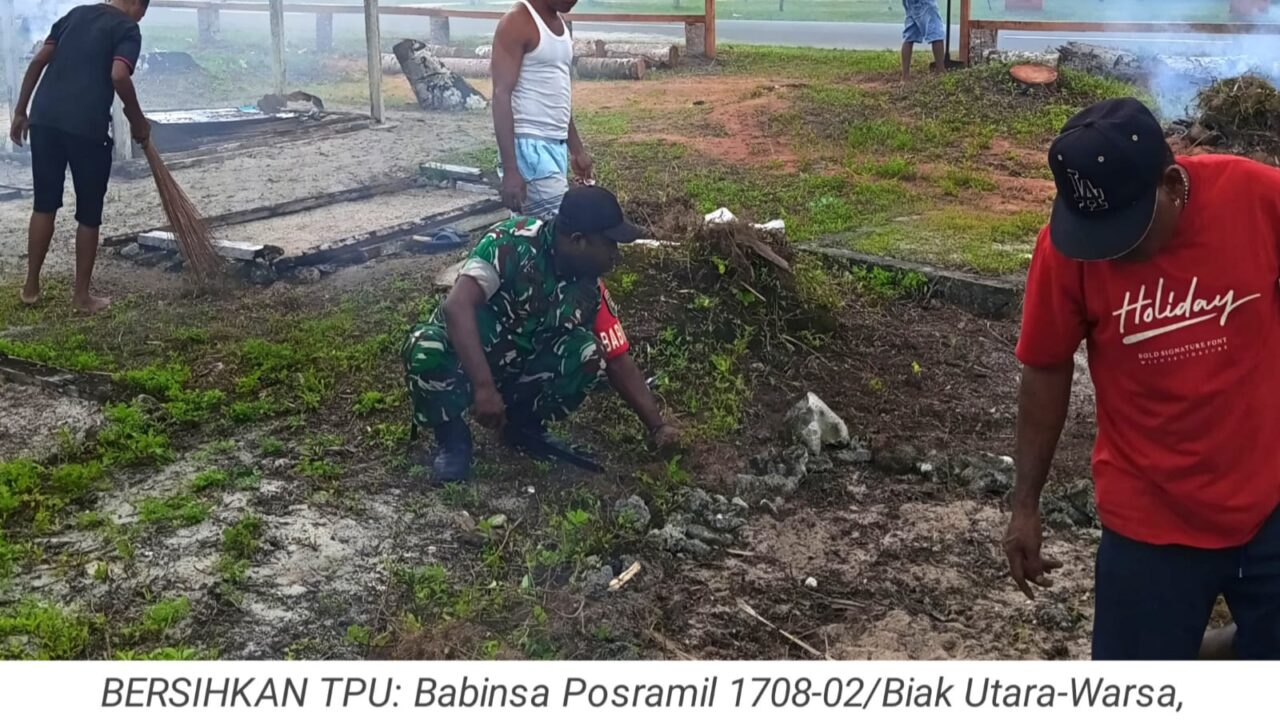 TOP-NEWS.id, WARSA - Upaya mempererat kebersamaan antara TNI dan masyarakat, Babinsa Posramil 1708-02/Biak Utara-Warsa, Praka Thomas Natai membantu warga membersihkan...