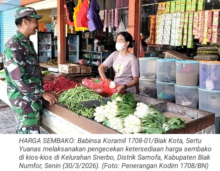 TOP-NEWS.id, BIAK - Babinsa Koramil 1708-01/Biak Kota, Sertu Yuanas melaksanakan pengecekan ketersediaan harga sembako secara langsung di kios-kios di Kelurahan...