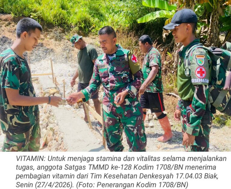 TOP-NEWS.id, BIAK UTARA - Untuk menjaga kondisi fisik selama pelaksanaan Program TNI Manunggal Membangun Desa (TMMD) ke-128, anggota Satgas TMMD...