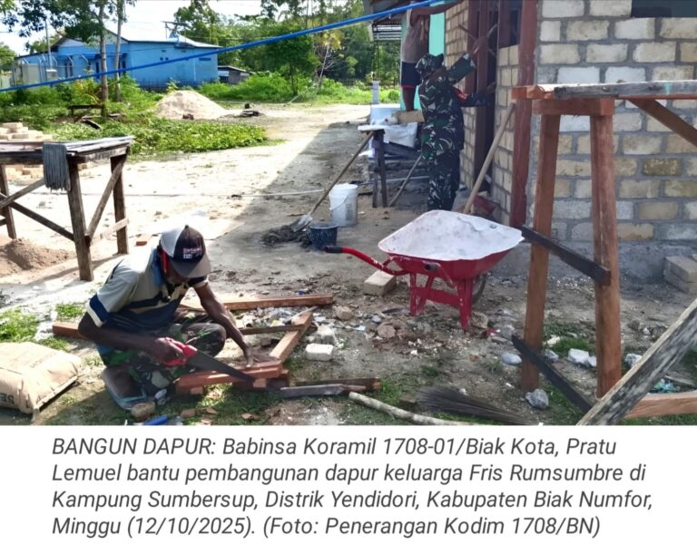 TOP-NEWS.id, BIAK - Sebagai wujud kepedulian terhadap masyarakat binaannya, Babinsa Koramil 1708-01/Biak Kota, Pratu Lemuel turun langsung membantu membangun dapur...