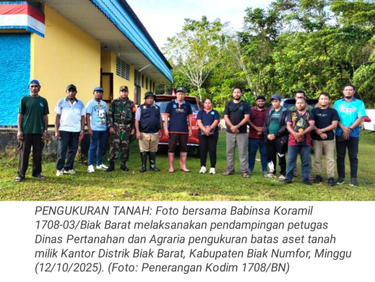 TOP-NEWS.id, BIAK BARAT - Babinsa Koramil 1708-03/Biak Barat melaksanakan pendampingan kepada petugas Dinas Pertanahan dan Agraria dalam kegiatan pengukuran batas...