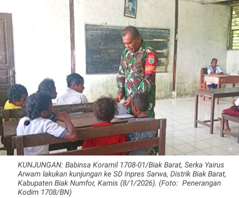 TOP-NEWS.id, BIAK BARAT - Babinsa Koramil 1708-01/Biak Barat, Serka Yairus Arwam melaksanakan kunjungan ke SD Inpres Sarwa, Distrik Biak Barat,...