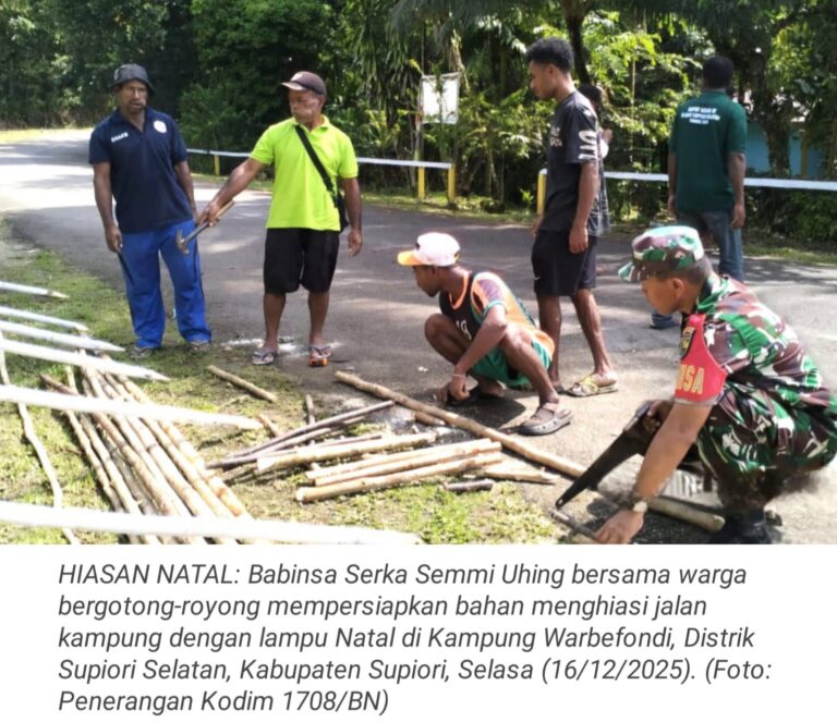 TOP-NEWS.id, SUPIORI SELATAN - Babinsa Serka Semmi Uhing bersama warga melaksanakan kegiatan gotong-royong mempersiapkan bahan untuk menghiasi jalan kampung dengan...