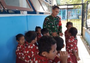 TOP-NEWS.id, BIAK – Babinsa Koramil 1708-01/Biak Kota, Serka Hadi Purnomo memberikan arahan kepada para murid di sela-sela waktu istirahat, Kehadiran Babinsa di tengah-tengah anak sekolah disambut hangat dan penuh antusias oleh para murid SD Inpres Angkasa, Kelurahan Mansinyas, Distrik Samofa, Kabupaten Biak Numfor, Papua, Kamis (17/7/2025).