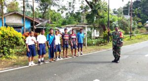 Babinsa Biak Barat Bantu Menyeberangkan Anak Sekolah di SMPN 1 Yomdori