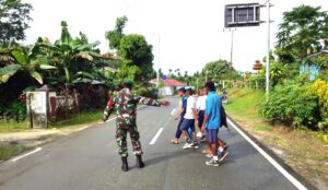 TOP-NEWS.id, BIAK BARAT – Babinsa Koramil 1708-03/Biak Barat, Serka James Bonsapia melaksanakan kegiatan pelayanan kepada masyarakat dengan membantu menyeberangkan anak-anak sekolah di depan SMP Negeri (SMPN) 1 Yomdori, Distrik Biak Barat, Kabupaten Biak Numfor, Papua, Jumat (23/1/2026).