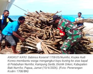 TOP-NEWS.id, BIAK NUMFOR – Babinsa Koramil 1708-03/Biak Barat, Serka Yairus Arwam turun langsung membantu warga membersihkan kebun milik Septer Krey di Kampung Sarwa, Distrik Swandiwe, Kabupaten Biak Numfor, Papua, Sabtu (11/4/2026).