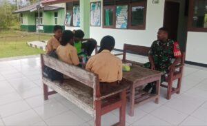 TOP-NEWS.id, BIAK BARAT – Dalam rangka memperkuat rasa cinta Tanah Air dan membangun karakter generasi muda, Babinsa Koramil 1708-03/Biak Barat, Serda Jefri Mandacan memberikan materi wawasan kebangsaan (wasbang) kepada pelajar SMAN 1 Biak Barat di Kampung Yomdori, Distrik Biak Barat, Kabupaten Biak Numfor, Papua, Sabtu (10/5/2025).