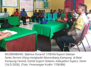 TOP-NEWS.id, BIAK BARAT – Dalam rangka meningkatkan hubungan kerja sama yang baik di wilayah binaan, Babinsa Koramil 1708-03/Biak Barat Serka James Bonsapia melaksanakan komunikasi sosial (komsos) bersama petani sayur di Kampung Yomdori, Distrik Biak Barat, Kabupaten Biak Numfor, Papua, Rabu (17/2/2026).