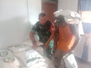 Babinsa Biak Kota Dampingi Penyaluran Bantuan Beras Pangan Nasional