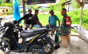 TOP-NEWS.id, BIAK KOTABabinsa Koramil 1708-01/Biak Kota, Pratu Barens Wasanggai melaksanakan kegiatan komunikasi sosial (komsos) dan dekat dengan warga di Pangkalan Ojek Sorido, Distrik Biak Kota, Kabupaten Biak Numfor, Papua, Minggu (7/12/2025).