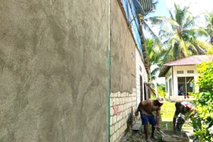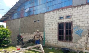Babinsa Biak Timur Bantu Plester Dinding Rumah Warga di Insumarires