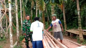 Babinsa Biak Timur Bantu Warga Skap Kayu untuk Bangun Rumah