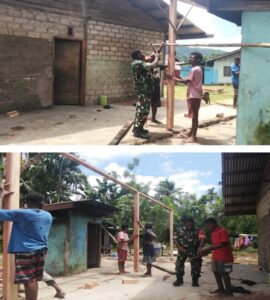 TOP-NEWS.id, BIAK – Wujud kepedulian terhadap masyarakat di wilayah binaan, Babinsa Koramil 1708-02/Biak Utara, Serka Sefnat Kafiar melaksanakan kegiatan karya bakti bersama warga membangun rumah layak huni milik Pithein Kafiar di Kampung Nermnu, Distrik Biak Utara, Kabupaten Biak Numfor, Papua, Rabu (29/4/2026).