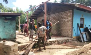 Babinsa Biak Utara Hadir Bantu Pembangunan Rumah Warga di Nermnu