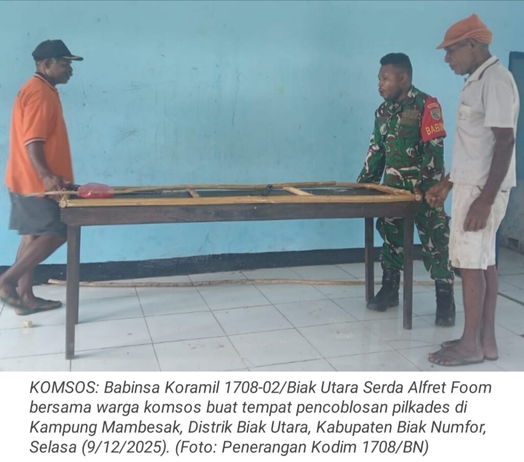 TOP-NEWS.id, BIAK UTARA – Upaya mempererat hubungan dengan masyarakat, Babinsa Koramil 1708-02/Biak Utara Serda Alfret Foom melaksanakan kegiatan komunikasi sosial (komsos) bersama warga. Kegiatan ini dilakukan untuk menjaga kedekatan, menjalin silaturahmi, serta memperkuat kerja sama antara Babinsa dan masyarakat di Kampung Mambesak, Distrik Biak Utara, Kabupaten Biak Numfor, Papua, Selasa (9/12/2025).