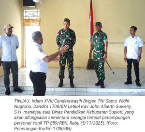 TOP-NEWS.id, BIAK UTARABabinsa Koramil 1708-02/BU, Sertu Abraham Abrauw turun langsung membantu warga masyarakat dalam pembangunan jamban di lingkungan SMA Negeri (SMAN) 1 Biak Utara, Kabupaten Biak Numfor, Papua, Kamis (6/11/2025).