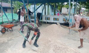 Babinsa Numfor Bantu Warga Jemaat GKI Bahitell Yenburwo Buat Campuran Batu Tela