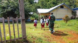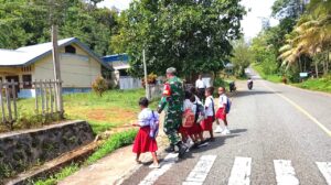 Babinsa Peduli Keselamatan Anak Sekolah di Biak Utara