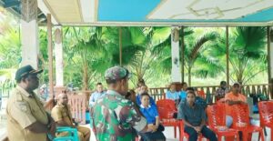 TOP-NEWS.id, ORIDEK – Sebagai bentuk kepedulian terhadap sanitasi dan kebersihan masyarakat di wilayah binaan, Bintara Pembina Desa (Babinsa) Posramil 1708-01/Biak Timur Sertu Reynold A J Rumpaisum menghadiri kegiatan Sosialisasi Sanitasi Total Berbasis Masyarakat (STBM) yang diselenggarakan UPTD Puskesmas Marauw.
