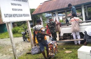 Babinsa Supiori Selatan Bantu Warga Berpergian Menggunakan Kendaraan Roda Empat