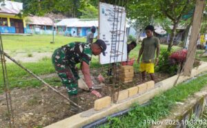 TOP-NEWS.id, WARSA – Upaya mendukung percepatan pembangunan pagar sekolah dasar (SD) di wilayah binaannya, Babinsa Koramil 1708-04/Supiori Selatan, Serda Sudirman, turut membantu warga melakukan pencampuran semen untuk pembangunan pagar SD di Kampung Odori, Distrik Supiori Selatan, Kabupaten Supiori, Papua, Rabu (19/11/2025).