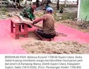 TOP-NEWS.id, SUPIORIBabinsa Koramil 1708-04/Supiori Selatan, Serka Falentinus Warfandu melaksanakan komunikasi sosial (komsos) bersama tokoh adat (keret) Tom Rumere di Kampung Maryaidori, Distrik Supiori Selatan, Kabupaten Supiori, Papua, Minggu (15/2/2026).