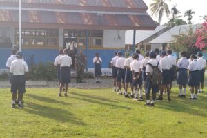 Sementara itu, Kepala SMP YPK I Korido, Ibu Satriatty Rumere, S.Pd., menyampaikan apresiasi dan ucapan terima kasih atas bimbingan serta motivasi yang diberikan oleh Babinsa kepada para siswa.