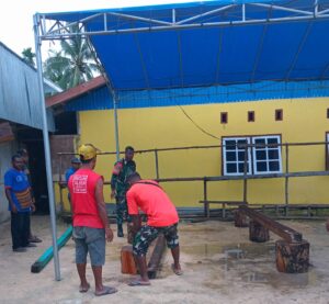 Babinsa Supiori Utara Bantu Warga Binaan Mendirikan Tenda dan Panggung