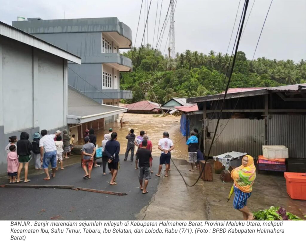 TOP-NEWS.id, JAKARTA- Banjir melanda Kabupaten Halmahera Barat, Provinsi Maluku Utara, akibat curah hujan dengan intensitas tinggi yang terjadi sejak Rabu dini hari,( 7/1), sekitar pukul 04.00 WIT. Dilaporkan dua orang meninggal dan ribuan jiwa terdampak.