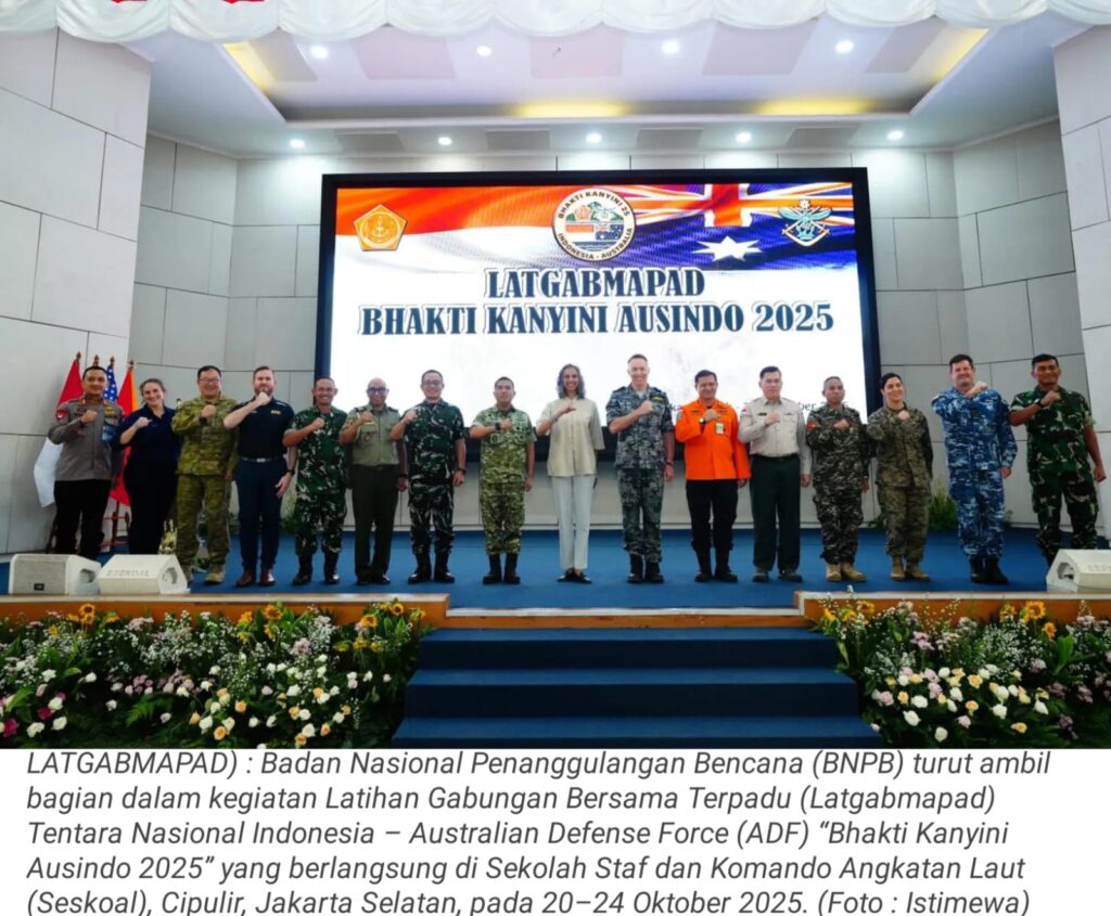 TOP-NEWS.id, JAKARTA – Badan Nasional Penanggulangan Bencana (BNPB) turut ambil bagian dalam kegiatan Latihan Gabungan Bersama Terpadu (Latgabmapad) Tentara Nasional Indonesia – Australian Defense Force (ADF) “Bhakti Kanyini Ausindo 2025”.