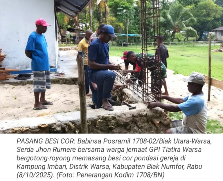 TOP-NEWS.id, WARSA - Dalam semangat kebersamaan dan kepedulian terhadap kehidupan beragama, Babinsa Posramil 1708-02/Biak Utara-Warsa, Serda Jhon Rumere bersama warga...