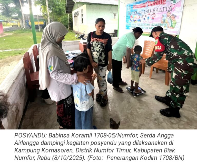 TOP-NEWS.id, NUMFOR - Upaya mendukung program pemerintah di bidang kesehatan, Babinsa Koramil 1708-05/Numfor, Serda Angga Airlangga turut mendampingi kegiatan posyandu...