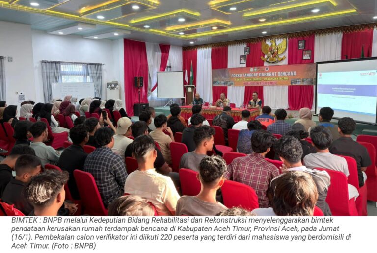 TOP-NEWS.id, ACEH TIMUR – Badan Nasional Penanggulangan Bencana (BNPB) melalui Kedeputian Bidang Rehabilitasi dan Rekonstruksi menyelenggarakan bimbingan teknis (bimtek) pendataan...