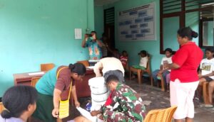 TOP-NEWS.id, WARSA – Upaya mencegah penyebaran penyakit malaria di wilayah binaannya, Babinsa Posramil 1708-02/Biak Utara-Warsa, Serda Jhon Rumere mendampingi petugas kesehatan (nakes) Puskesmas Warsa membagikan kelambu gratis kepada masyarakat di Kampung Maniri, Distrik Warsa, Kabupaten Biak Numfor, Papua, Selasa (28/10/2025).