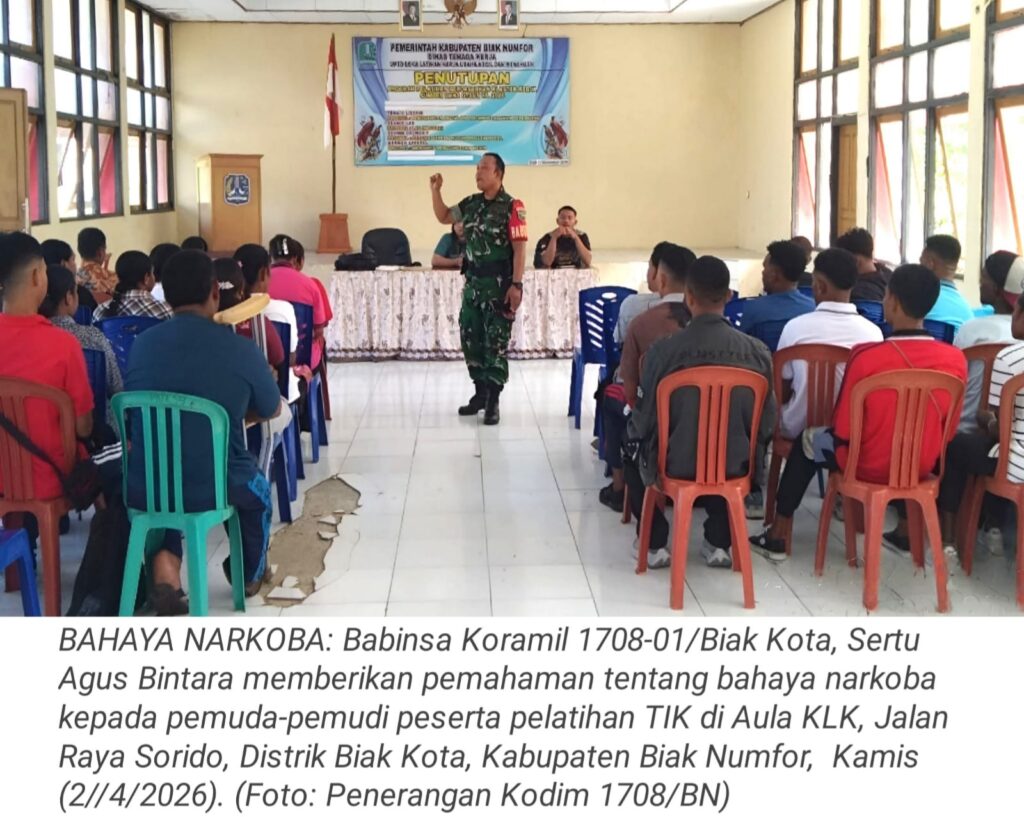 Cegah Narkoba Sejak Dini, Babinsa Biak Kota Edukasi Pemuda Peserta TIK