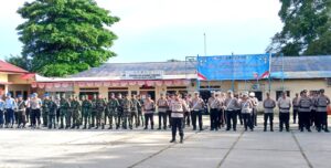 Personel gabungan TNI Polri laksanakan apel gelar pasukan Operasi Kepolisian Terpusat Ketupat 2026. (Foto: Penerangan Kodim 1708/BN)
