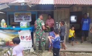 Serda Sudirman jalin silaturahmi dan komunikasi dengan pedagang pinang. (Foto: Penerangan Kodim 1708/BN)