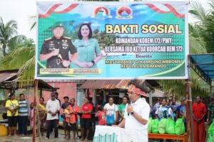 Dalam kunjungan ini, Danrem 172/PWY membawa misi kemanusiaan berupa kegiatan bakti sosial (baksos). Sebanyak 300 paket sembako dibagikan langsung kepada masyarakat Kampung Mbromsi sebagai bentuk kepedulian dan dukungan TNI terhadap masyarakat di wilayah terpencil.