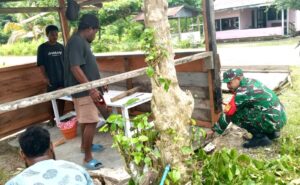 Sementara itu, Hendrik Rumbiak menyampaikan rasa terima kasih atas bantuan Babinsa dan warga yang telah meluangkan waktu untuk membantu pembangunan kios miliknya.