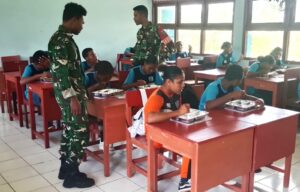 Kepala SMPN 1 Biak Timur Edi Palombu, S.Pd menyampaikan rasa terima kasihnya kepada Babinsa yang telah ikut serta mendampingi program ini.