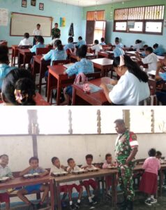 Babinsa yang terlibat dalam kegiatan ini, yaitu Sertu Petrus Mandosir, Sertu Wahyu Hendro Patrias Setiawan, dan Kopka Absalom Dimara. Mereka turun langsung memastikan pembagian berjalan tertib dan setiap siswa menerima makanan sesuai jumlah yang ditetapkan.