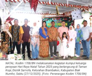 “Kegiatan gotong-royong bersama masyarakat ini dalam rangka mempersiapkan acara nikah anak Bapak Titus Mofu. Kami ingin TNI selalu ada di hati rakyat, dan senantiasa bekerja sama dengan rakyat,” ucap Serda Teriyanus Mambrasar.