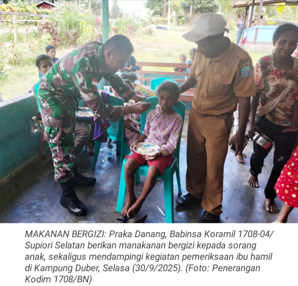 TOP-NEWS.id, SUPIORI – Bentuk kepedulian terhadap kesehatan masyarakat kembali terlihat di Distrik Supiori Timur, Kabupaten Supiori, Papua. Babinsa Koramil 1708-04/Supiori Selatan, Praka Danang ikut mendampingi kegiatan kelas ibu hamil yang digelar oleh Puskesmas Pembantu (Pustu) Duber di Balai Kampung Duber, Selasa (30/9/2025).