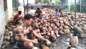 Lebih lanjut ia menjelaskan, pengolahan kopra dilakukan dengan cara memisahkan isi kelapa dari batok, kemudian dijemur hingga kering. Proses ini membutuhkan ketelatenan, karena kualitas kopra sangat bergantung pada cara pengolahan. Kopra yang baik akan lebih mudah dipasarkan dan memiliki harga yang lebih tinggi.