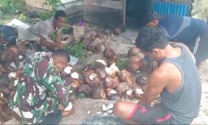 Sementara itu, Mauirits Rumbewas, salah satu warga sekaligus pemilik kebun kelapa, mengaku senang dengan kehadiran Babinsa yang ikut bekerja bersama masyarakat. Ia menilai perhatian dan bantuan kecil dari Babinsa sangat berarti bagi warga kampung.