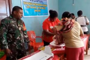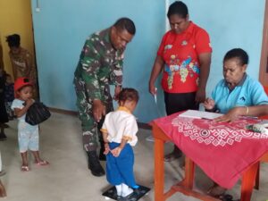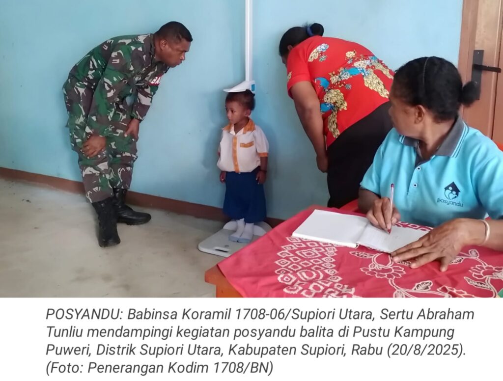 TOP-NEWS.id, SUPIORI – Babinsa Koramil 1708-06/Supiori Utara, Sertu Abraham Tunliu ikut mendampingi kegiatan posyandu balita di Pustu Kampung Puweri, Distrik Supiori Utara, Kabupaten Supiori, Papua, Rabu (20/8/2025).