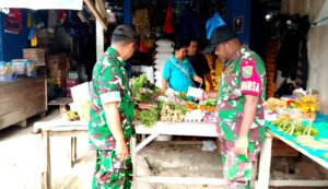Babinsa turun langsung ke pasar tradisional guna melihat secara langsung kondisi harga serta ketersediaan bahan pokok yang dijual oleh para pedagang.