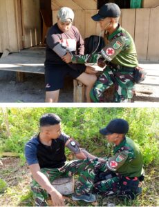 Agar kondosi prima saat jalankan tugas di lapangan, anggota Satgas TMMD 128 Kodim 1708/BN lakukan cek kesehatan. (Foto: Penerangan Kodim 1708/BN)