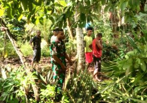 TOP-NEWS.id, BIAK – Babinsa Posramil 1708-02 Biak Utara-Warsa, Serda Jhon Rumere aktif membantu warga binaannya di Kampung Imbari, Distrik Warsa, Kabupaten Biak Numfor, Papua dalam kegiatan menebang dan menokok sagu menggunakan alat tradisional, Rabu (3/7/2024).